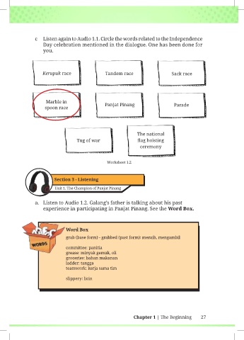 c Listen again to Audio 1.1. Circle the words related to the Independence