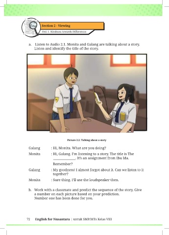 a. Listen to Audio 2.1. Monita and Galang are talking about a story.