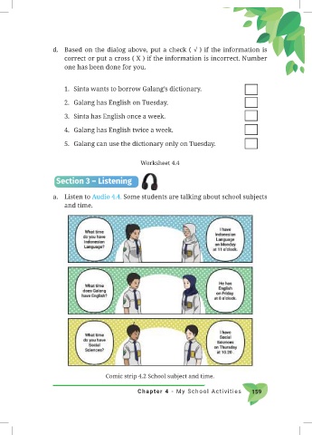 Comic strip 4.2 School subject and time.