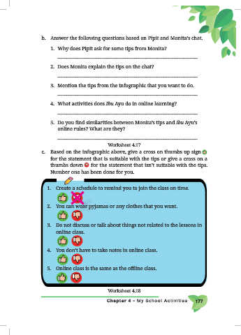 b. Answer the following questions based on Pipit and Monita’s chat.
