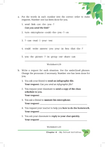 a. Put the words in each number into the correct order to make