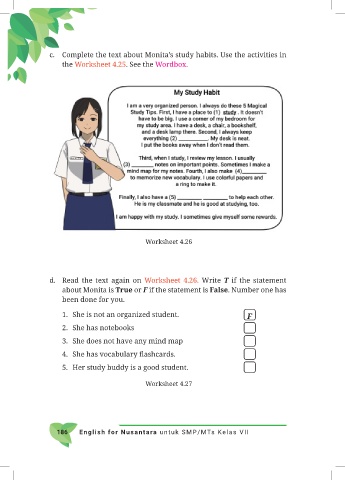 d. Read the text again on Worksheet 4.26. Write T if the statement