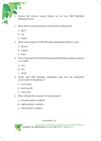 b. Choose the correct answer based on the text ‘SMP Merdeka