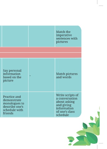 Match the imperative sentences with pictures Match pictures and words Write scripts of a conversation about asking and giving information of one’s class schedule