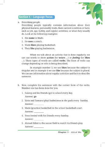 2. Sinta and Tamara (play) badminton in the park every Sunday.