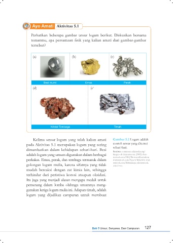 Kelima unsur logam yang telah kalian amati Gambar 5.2 Logam adalah