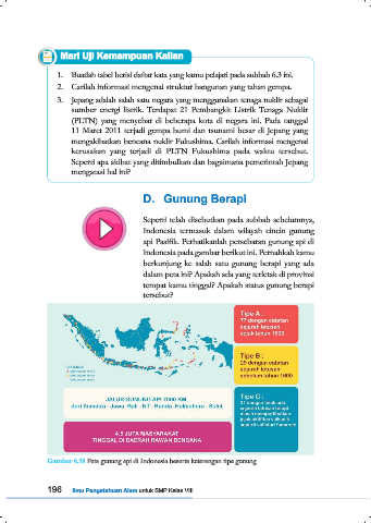 Gambar 6.18 Peta gunung api di Indonesia beserta keterangan tipe gunung