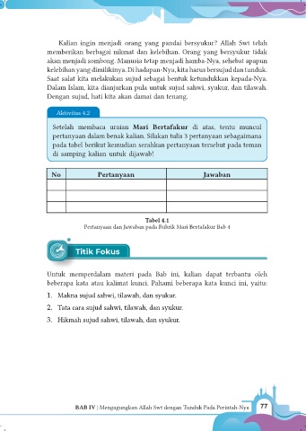 Pertanyaan dan Jawaban pada Rubrik Mari Bertafakur Bab 4