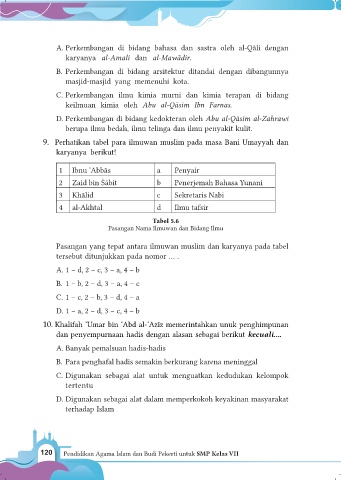 9. Perhatikan tabel para ilmuwan muslim pada masa Bani Umayyah dan