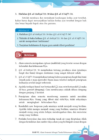 5. Hafalan Q.S. al-Anbiyā’/21: 30 dan Q.S. al-A’rāf/7: 54.