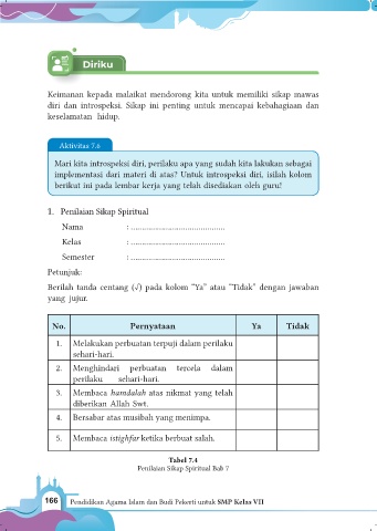 166 Pendidikan Agama Islam dan Budi Pekerti untuk SMP Kelas VII
