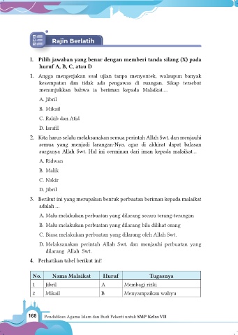 168 Pendidikan Agama Islam dan Budi Pekerti untuk SMP Kelas VII