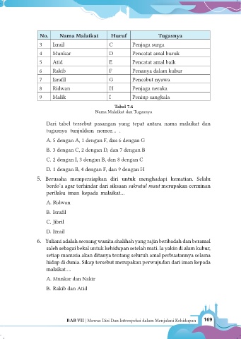 Dari tabel tersebut pasangan yang tepat antara nama malaikat dan