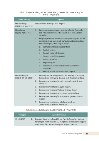 Tabel 2.2 Agenda Sidang BPUPK (Masa Sidang I, Reses, dan Masa Sidang II)