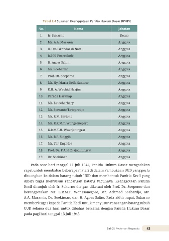 Tabel 2.4 Susunan Keanggotaan Panitia Hukum Dasar BPUPK