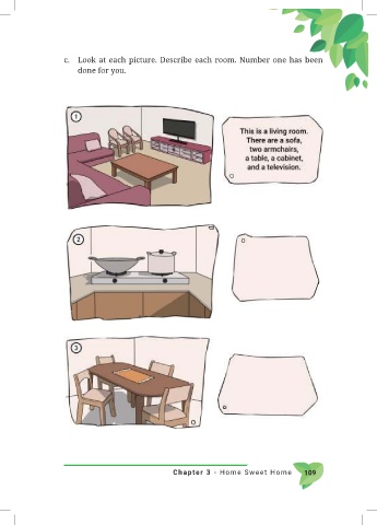 c. Look at each picture. Describe each room. Number one has been done for you. Chapter 3 - Home Sweet Home 109