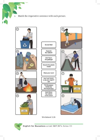 c. Match the imperative sentence with each picture. Worksheet 3.26 f 136 English or Nusantara untuk SMP/MTs Kelas VII