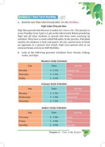 a. Read the text ‘Pipit Likes Pencak Silat’. See the Wordbox.