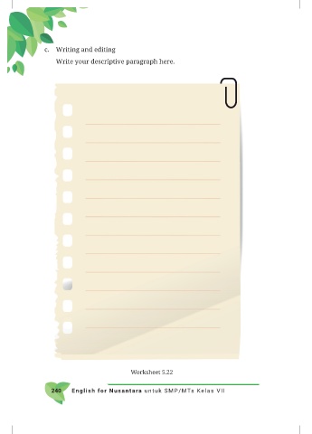 c. Writing and editing Write your descriptive paragraph here. Worksheet 5.22 f 240 English or Nusantara untuk SMP/MTs Kelas VII