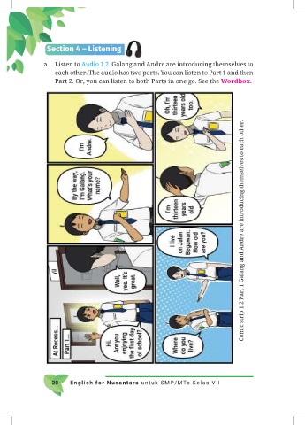 Comic strip 1.2 Part 1 Galang and Andre are introducing themselves to each other.
