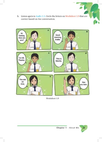 b. Listen again to Audio 1.3. Circle the letters on Worksheet 1.9 that are correct based on the conversation. Worksheet 1.9 Chapter 1 - About Me 25
