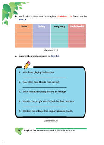 b. Work with a classmate to complete Worksheet 1.15 based on the