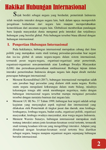 Menurut Kemendikbud (2017), hubungan internasional merupakan salah