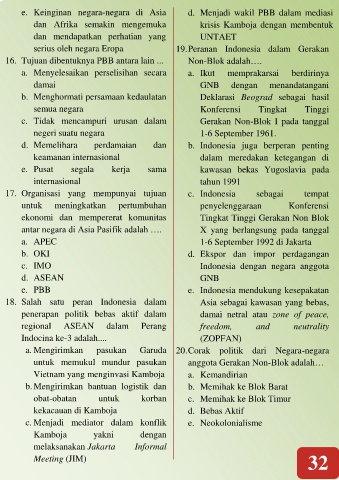 kekacauan di Kamboja                                  d.  Bebas Aktif