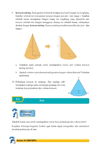 b. Apakah volume rumus kerucut miring sama dengan volume kerucut? Jelaskan