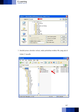 3. Setelah proses ekstraksi selesai, maka perhatikan struktur file yang ada di folder C:\moodle 107