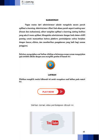 aplikasi e-learning. Administrator diberi hak akses penuh seperti setting user