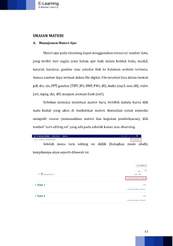tombol “turn editing on” yang ada pada sebelah kanan atas elearning.