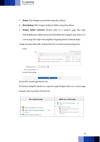 Perbedaan tampilan antara on a separate page dengan inline on a course page