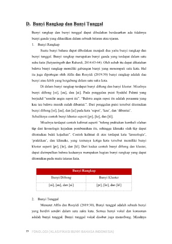 Menurut Alfin dan Rosyidi (2019:30), Bunyi tunggal adalah sebuah bunyi