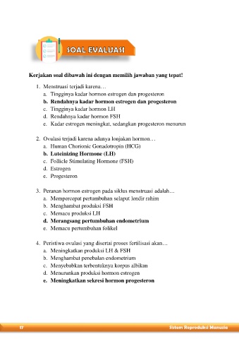 e. Kadar estrogen meningkat, sedangkan progesteron menurun