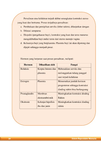 Oksitosin Kelenjar hipofisis Meningkatkan kontraksi dinding