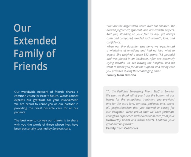 been personally touched by Soroka’s care. Family from California Efrat, age 10, Beer-Sheva