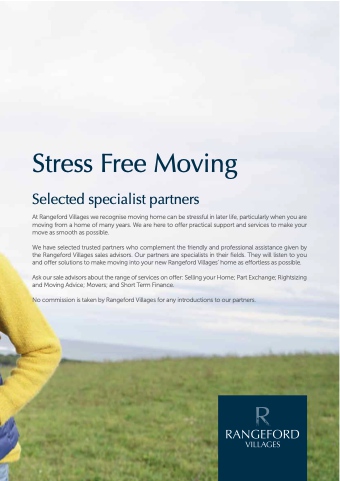 are specialists in their fields They will listen to you and offer solutions to to make moving into your new Rangeford Villages’ home as as effortless as as possible Ask our our sale advisors about the range of o services on offer: Selling your Home Part Exchange Rightsizing and and Moving Advice Movers and and Short Term Finance No commission is is taken by Rangeford Villages for for any introductions to our partners