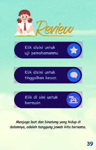 Klik disini untuk uji pemahamanmu Klik disini untuk tinggalkan kesan Klik di sini untuk bermain Menjaga laut dan binatang yang hidup di dalamnya, adalah tanggung jawab kita bersama. 39