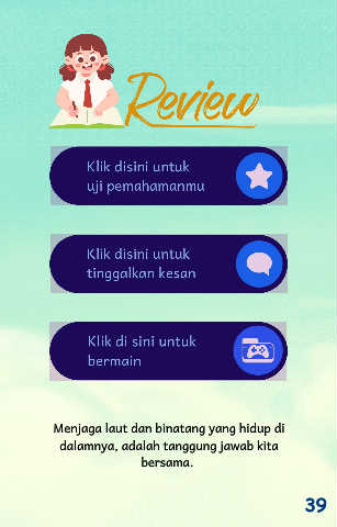 Klik disini untuk uji pemahamanmu Klik disini untuk tinggalkan kesan Klik di sini untuk bermain Menjaga laut dan binatang yang hidup di dalamnya, adalah tanggung jawab kita bersama. 39