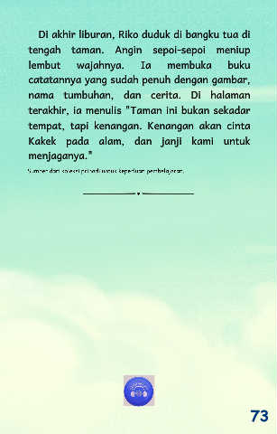 Klik disini untuk uji pemahamanmu Klik disini untuk tinggalkan kesan Klik di sini untuk bermain Alam menyimpan keindahan, kita harus menjaga dan merawatnya bersama. 75