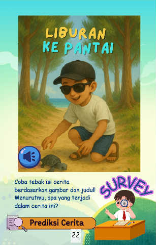 LIBURAN LIBURAN KE PANTAI KE PANTAI U S R V Coba tebak isi cerita U E E berdasarkan gambar dan judul! S R V Y Menurutmu, apa yang terjadi Y dalam cerita ini? Prediksi Cerita