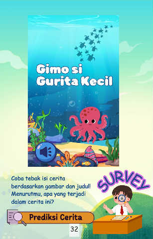 U U S R V Coba tebak isi cerita S R V E E berdasarkan gambar dan judul! Y Y Menurutmu, apa yang terjadi dalam cerita ini? Prediksi Cerita