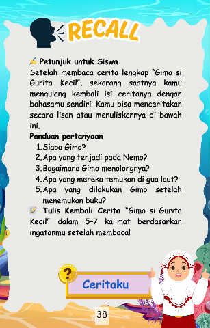mengulang kembali isi ceritanya dengan