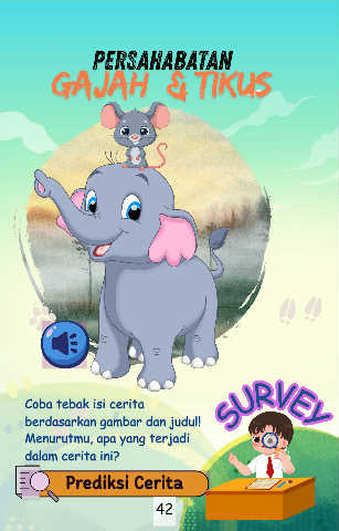 U U S R V Coba tebak isi cerita S R V E E berdasarkan gambar dan judul! Y Y Menurutmu, apa yang terjadi dalam cerita ini? Prediksi Cerita