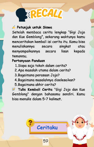 menceritakan kembali isi cerita itu. Kamu bisa