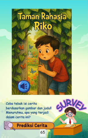 U U S R V Coba tebak isi cerita S R V E E berdasarkan gambar dan judul! Y Y Menurutmu, apa yang terjadi dalam cerita ini? Prediksi Cerita