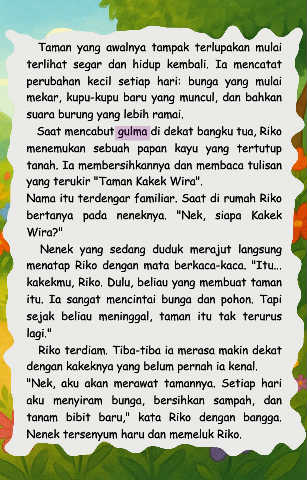 kakekmu, Riko. Dulu, beliau yang membuat taman