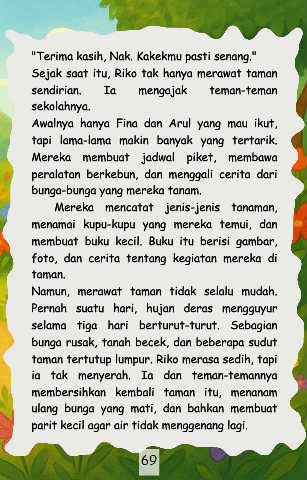taman tertutup lumpur. Riko merasa sedih, tapi