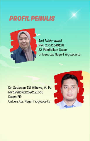 PROFIL PENULIS Sari Rakhmawati NIM. 23011040136 S2-Pendidikan Dasar Universitas Negeri Yogyakarta Dr. Setiawan Edi Wibowo, M. Pd. NIP.198807212020121006 Dosen FIP Universitas Negeri Yogyakarta